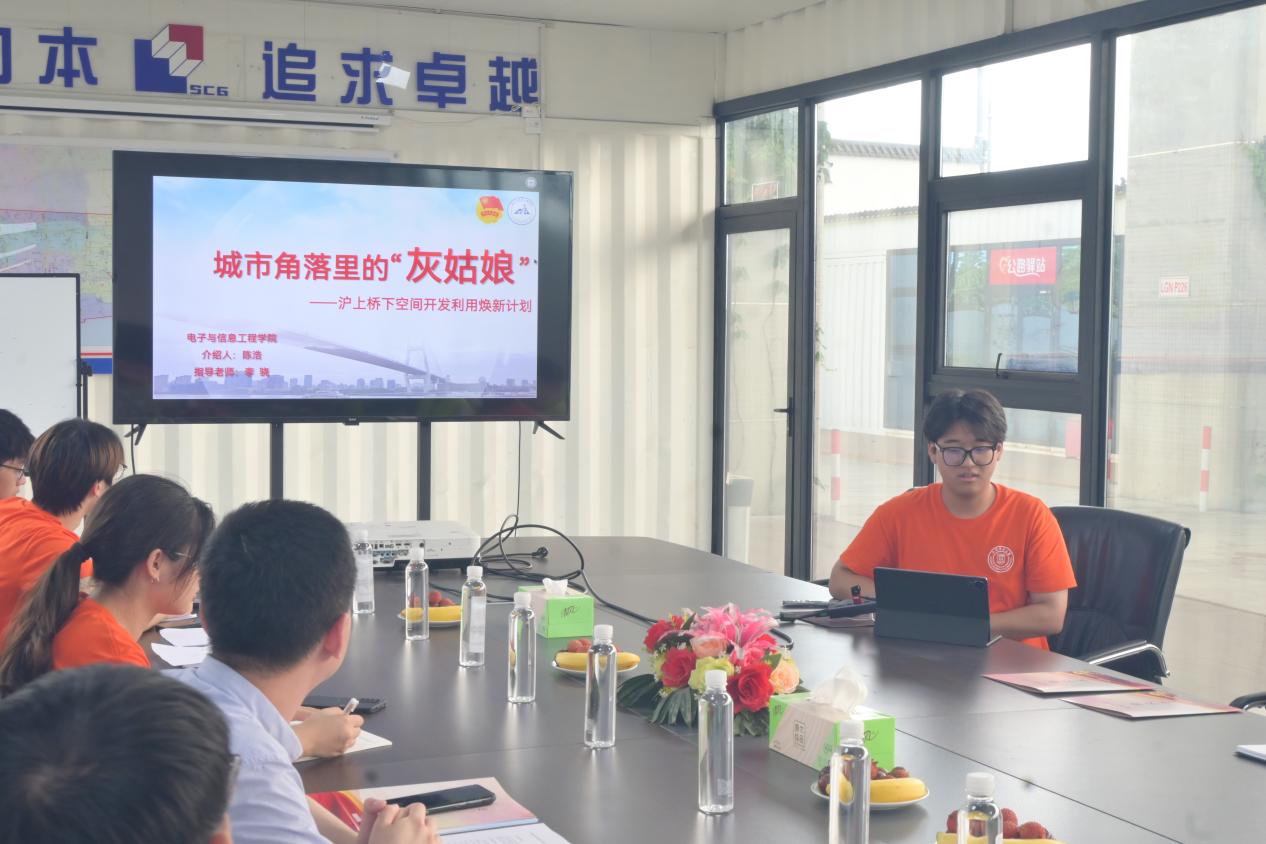 7月7日,团队前往上海建工四建集团市政工程公司进行交流学习。上海建工四建集团市政养护项目党支部书记、养护项目负责人韦珉与上海建工四建集团市政养护项目党支部委员、临港综合养护项目技术负责人金晨为实践队带来了一场内容充实、讲解详尽的分享交流会。