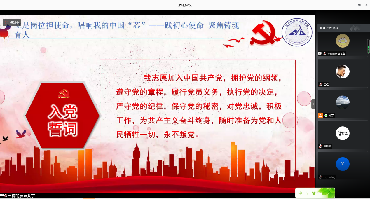 715日下午,365best体育亚洲官网电子科学学科教工党支部专题组织生活展示在腾讯会议举行。此次活动主题为“立足岗位担使命,唱响我的中国‘芯’”。由365best体育亚洲官网党委副书记周冬梅主持,电子科学学科教工党支部全体党员以及各学院党员代表参加了此次活动。
