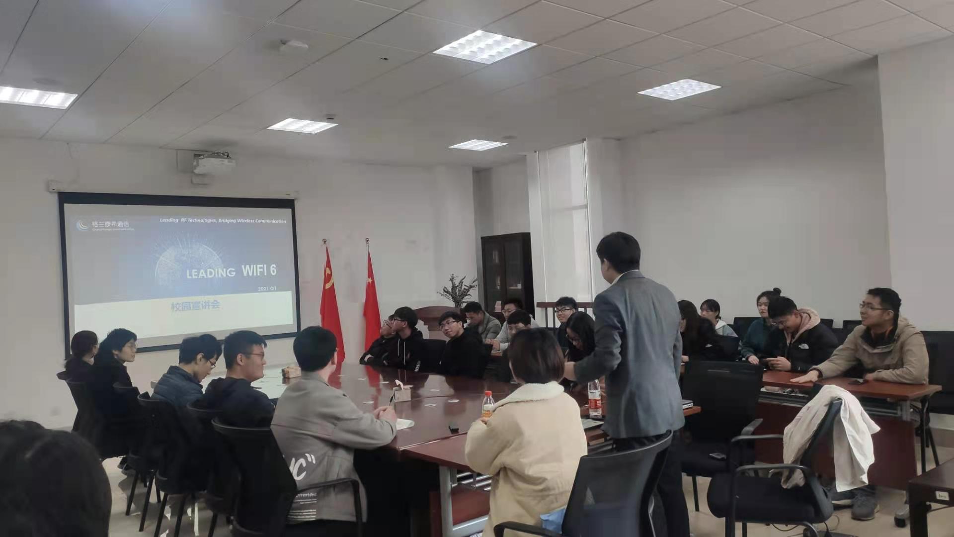 宣讲会在电计楼B402会议室举行,康希通信科技(上海)有限公司市场及应用工程副总裁虞强、产品研发应用副总监赵铭宇、现场应用工程师李震、人事专员万文杰,电信学院党委副书记周冬梅、就业负责人黄燕、辅导员任帼菲以及多名学生参加。