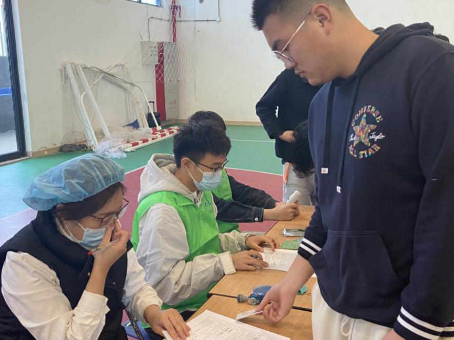 本次献血活动的顺利开展离不开志愿者同学们的积极参与,他们按照指定时间按时到岗并迅速投入到工作状态,主动配合血液中心医护人员完成现场献血工作,有的志愿者为献血同学讲解注意事项,有的在一旁搀扶献完血的同学到休息区稍作休息,有的为志愿献血的同学分发巧克力等小零食补充能量,还有些志愿者帮助医护人员将血浆袋送到集装区。