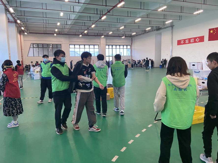 中午11:50,电信学院第一批无偿献血的同学们聚集在临港校区一教102教室完成《献血登记表》的填写工作,紧接着前往体育馆进行献血。在现场医护人员和志愿者们的引导下,参与志愿献血的同学们按照顺序依次进行现场验证、体检、抽血和观察休息等环节,一步一步完成献血前的检查工作,走到献血区时,同学们脸上洋溢着青春的笑容,还有的同学已经是大学期间第三次参加志愿献血活动了。