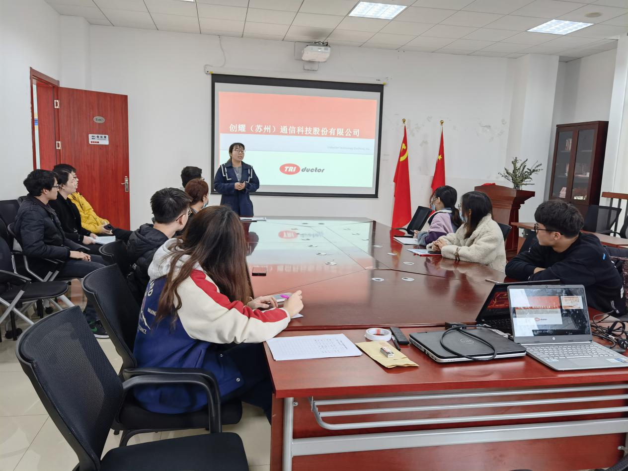 324日下午,创耀(苏州)通信科技股份有限公司2021届365best体育亚洲官网专场宣讲招聘会在临港校区电信楼B402室成功举办。创耀(苏州)通信科技股份有限公司人事专员汤秋玮王婕、夏燕、2019届校友黄文龙,电信学院毕业班辅导员崔释匀、任帼菲以及我校10余名2021届本科毕业生参会。