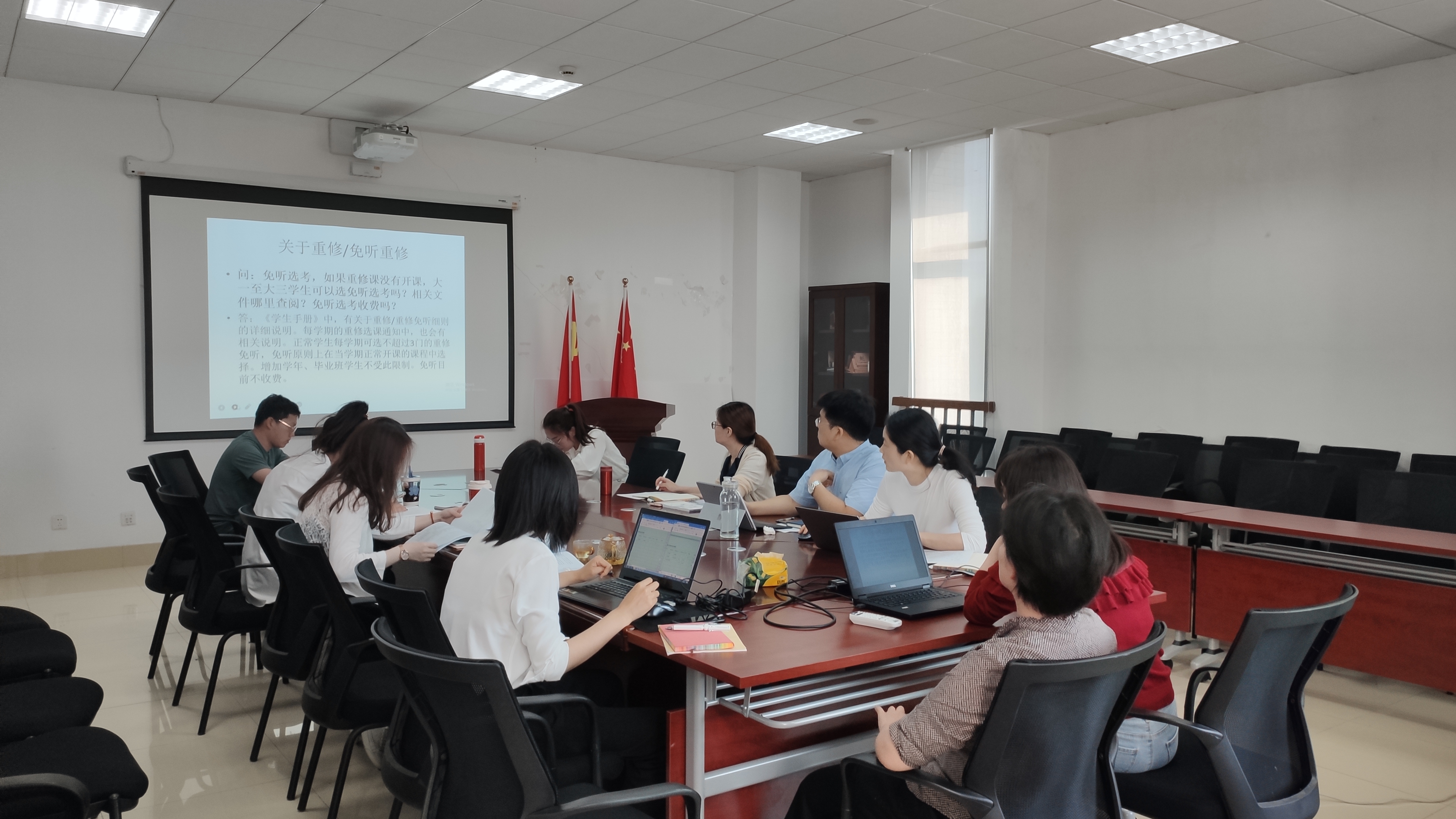 会议前期辅导员疏理了各自在教务方面存在的问题和困惑,会上教务员李文郁老师针对大家的问题,结合教学管理系统的使用进行了一一的讲解,并以特定年级进行举例说明。教务员林丽萍老师也结合不同年级学生专业培养方案的要求和差异进行了详细的分析与指导。随后,与会成员就学籍审核、重修与免听选考、毕业办学生选课与补考等方面的问题进行了互动交流,并达成了有效共识。同时大家也对更进一步做好辅导员和教务员之间工作的衔接提出了建设性的意见和建议。