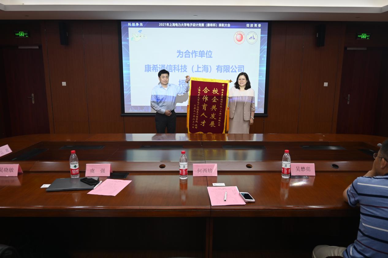 6月8日下午,“科创争先,绽放青春”2021年度365best体育亚洲官网电子设计竞赛(康希杯)表彰大会于学术楼303成功举行。康希通信科技(上海)有限公司副总裁虞强、人事行政经理吴晓敏受邀与会,出席本次大会的嘉宾有我校教务处副处长吴懋亮、电信学院党委书记何西培、党委副书记周冬梅、副院长赵琰、电信学院科创中心主任江超、自动化工程学院电子设计竞赛负责人康姝艺和戚尔江,本次电子设计竞赛(康希杯)的60余名获奖代表参加。