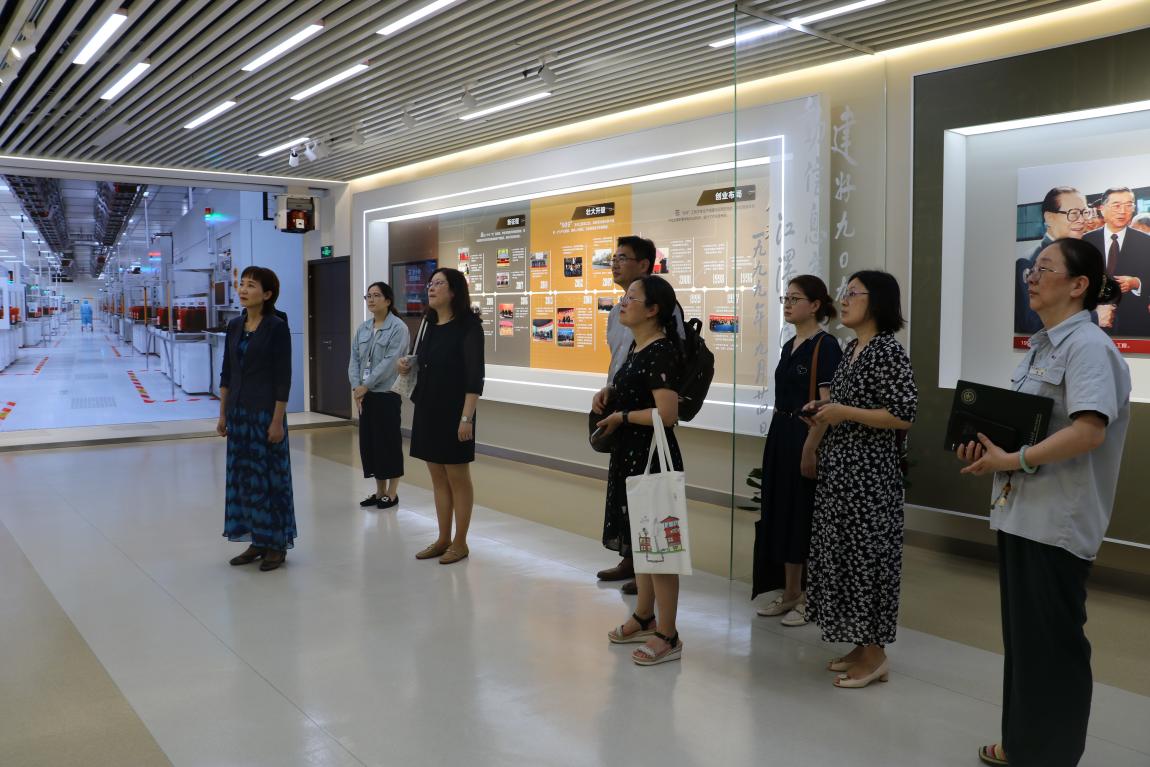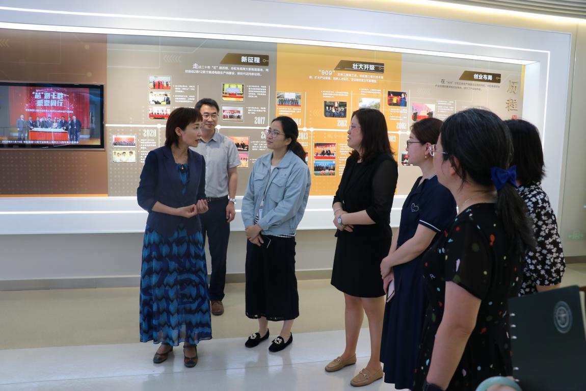 黄冬梅一行首先参观了上海华虹集团展示厅以及国内技术领先的华虹六厂12英寸芯片生产线。