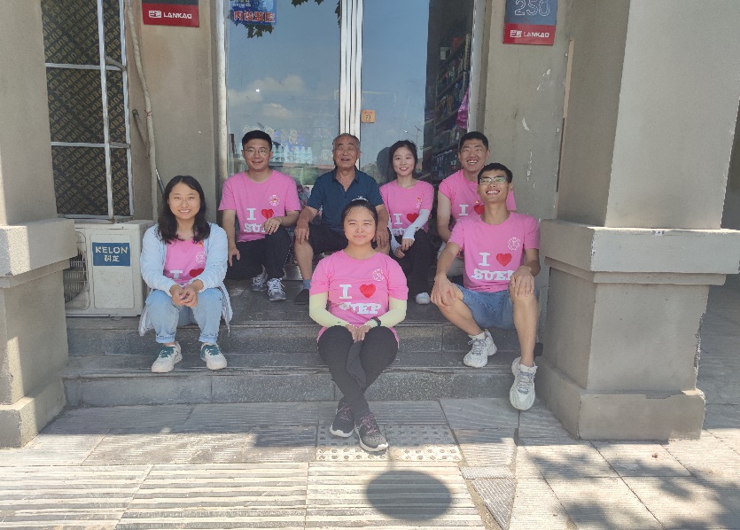 7 实践队员完成采访后,与小商店老板谢大爷的亲切合影