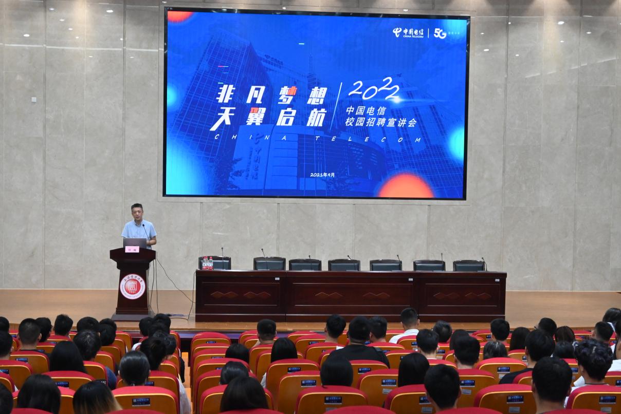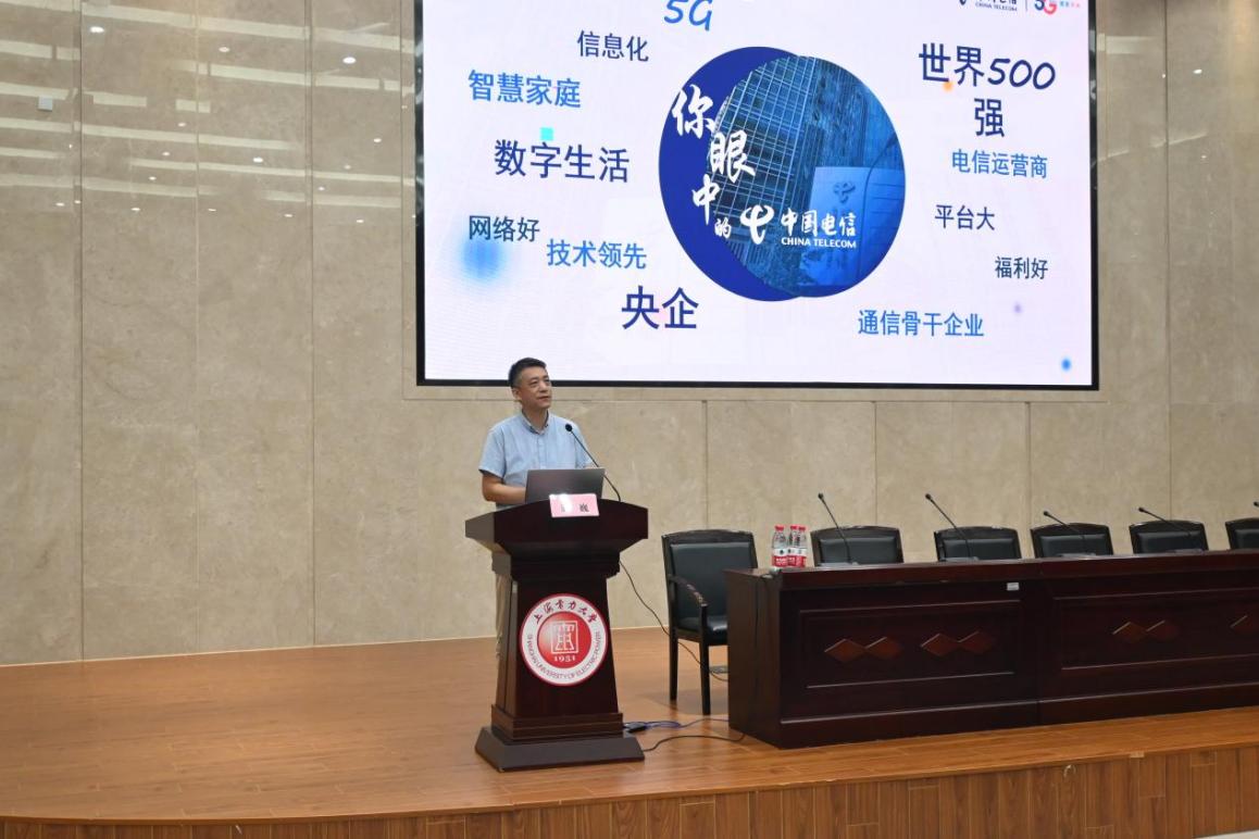 宣讲会上,骆巍首先向同学们介绍了今年的就业形势,提醒同学们要学会把握时机,抓住机会。在面对多份offer选择时要有鉴别力,强调初入职场,选择工作平台对于职业生涯发展的重要性。近四年,通过我校与中国电信公司的深入合作,已有150余名上电学子成功入职中国电信公司,骆巍鼓励到场的同学们树立良好的就业心态,踊跃投递简历,积极展现自己。