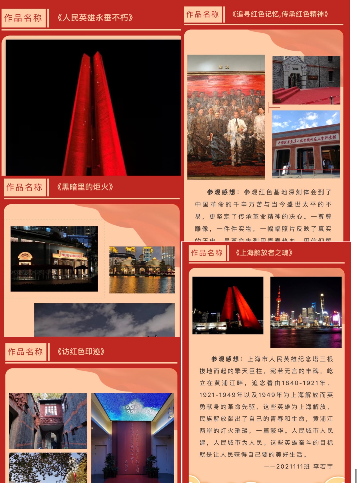 传承红色文化,践行初心使命;参观红色基地,赓续红色血脉。习近平总书记强调要“用好红色资源,传承好红色基因,把红色江山世世代代传下去”。国庆期间,电信学院面向全体师生开展了“参观红色基地,寻找红色足迹”创意摄影作品征集活动,通过参观红色基地的形式重温红色记忆,传承红色基因,从红色文化中汲取奋进力量。活动得到学院师生的热烈响应,纷纷递交参赛作品。