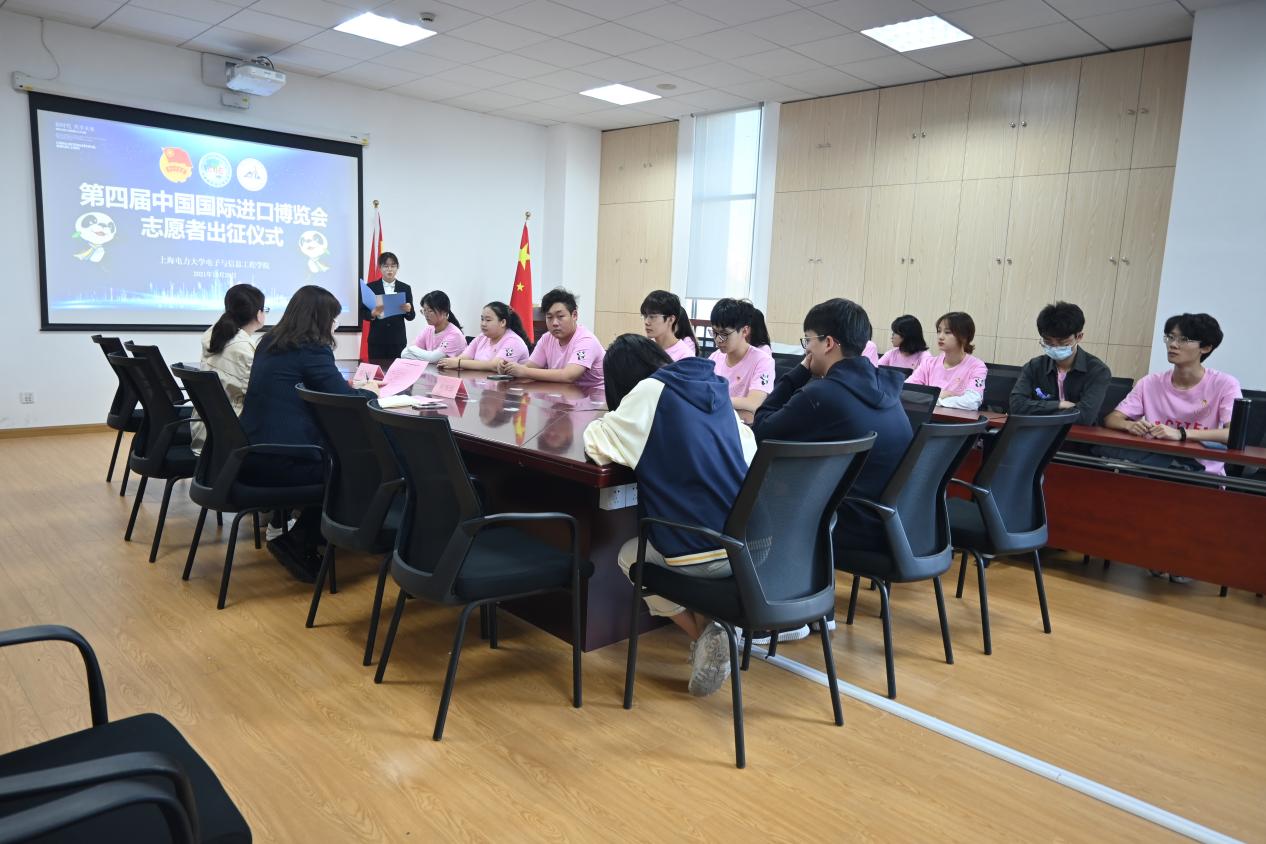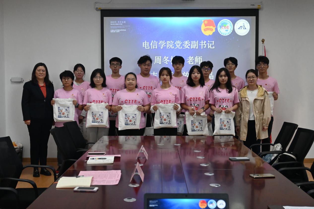1028日下午,第四届中国国际进口博览会电信学院志愿者出征仪式在电信楼B402顺利举行。电信学院党委书记何西培、党委副书记周冬梅以及学院全体进博会志愿者参加了本次活动。