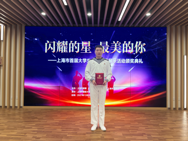 本次活动经过各高校推荐申报、专家评审、现场答辩、评选活动领导小组终评,共评选出 “风采之星”奖、“风采之星”提名奖和“风采团队”奖各10名。我校退伍士兵、电信学院赵家乐在系列评选中脱颖而出,以排名全市第4的成绩荣获首届上海市大学生士兵“风采之星”称号。他曾作为海军方队队员参加庆祝中华人民共和国成立70周年阅兵式,获“国庆阅兵”重大任务纪念章、受到习主席通令嘉奖,如今重返校园,退伍不褪色,卸戎甲不卸初心,充分发挥学生党员的先锋模范作用,用实际行动展现了一名新时代退伍大学生的闪耀风采。