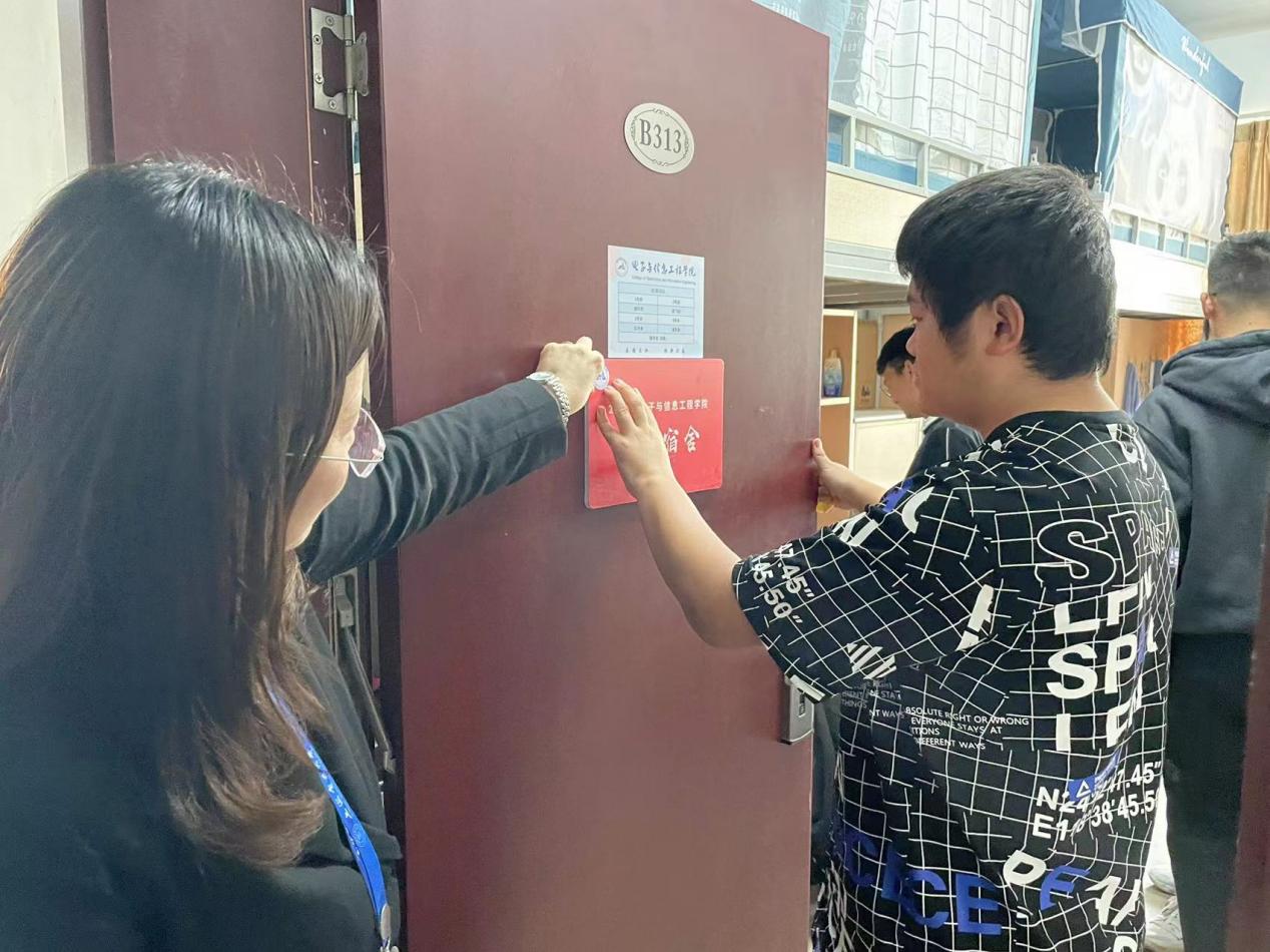 同时,为彰显学生党员在思想引领、行动引领方面的模范带头作用,发挥“亮身份、做表率”的作用,学院也为学生党员寝室进行了挂牌,要求学生党员“不忘初心、牢记使命”,在校园文明创建中发挥模范带头作用