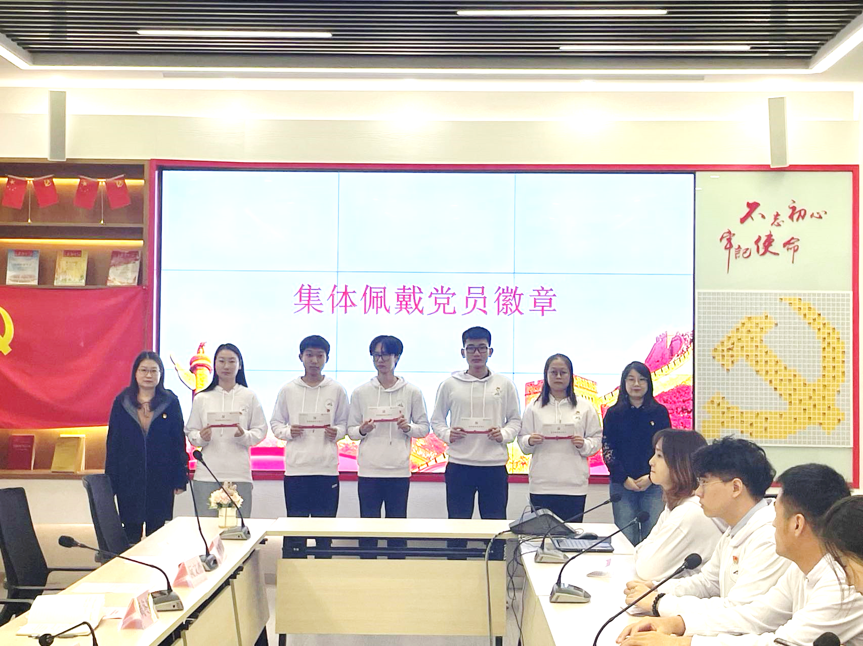 周冬梅宣读了《中共365best体育亚洲官网委员会关于批准接收贾明潇等13位同志为中共预备党员的通知》,随后与各党支部书记共同为新发展党员佩戴党员徽章,发放党员生日贺卡,与新党员们共享成长的喜悦。