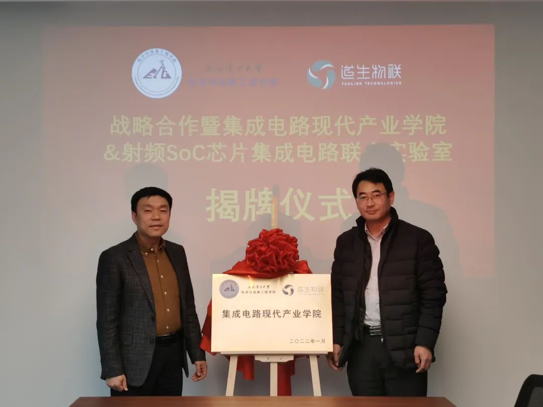 2022125日下午,365best体育亚洲官网电信学院与上海道生物联技术有限公司举行“集成电路现代产业学院”和“射频SoC芯片集成电路联合实验室”揭牌仪式。