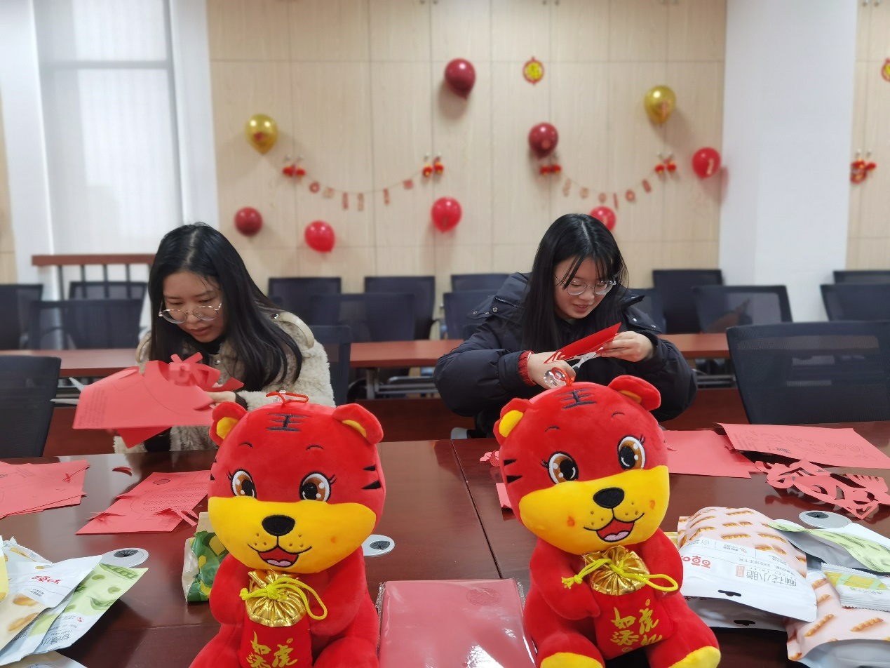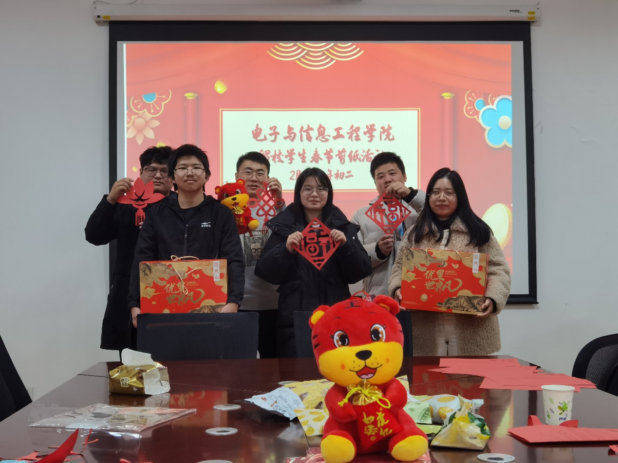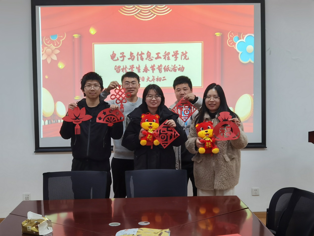 为丰富留校学生寒假生活,欢度壬寅虎年春节,2月2日大年初二上午,电信学院在电计楼B402会议室举办了留校学生迎春剪纸活动,留校同学在浓厚的节日氛围中亲身感受我国传统文化的魅力,增强了文化自信。