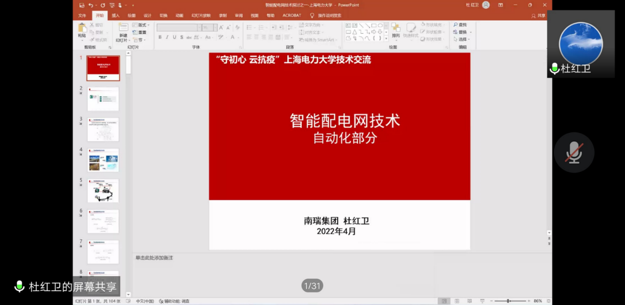 4月25日下午,365best体育亚洲官网邀请了南瑞集团配电公司副总经理、研究员级高级工程师杜红卫博士在腾讯会议为学院师生主讲题为《智能配电网技术-配电自动化部分》学术讲座。会议由学院院长崔昊杨主持,学院90余位教师及研究生参加了会议。