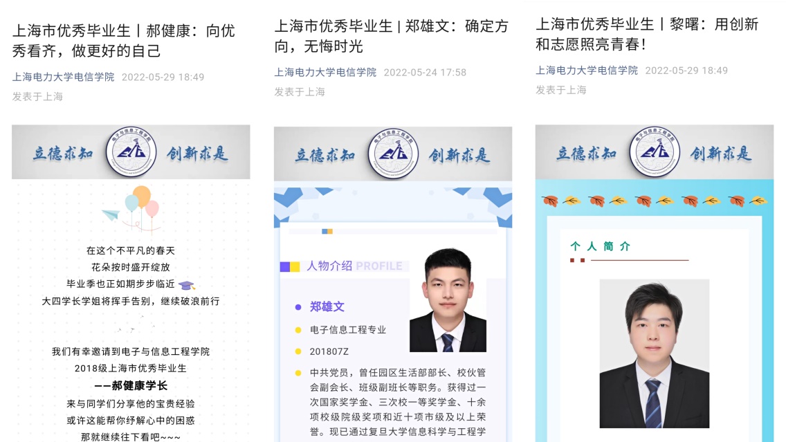 学院通过对本年度上海市优秀毕业生的事迹报道与宣传,特别是通过对其中优秀贫困学生的先进事迹报道,激发学生拼搏向上的内生动力,鼓励学生不忘初心,奋勇争先。
