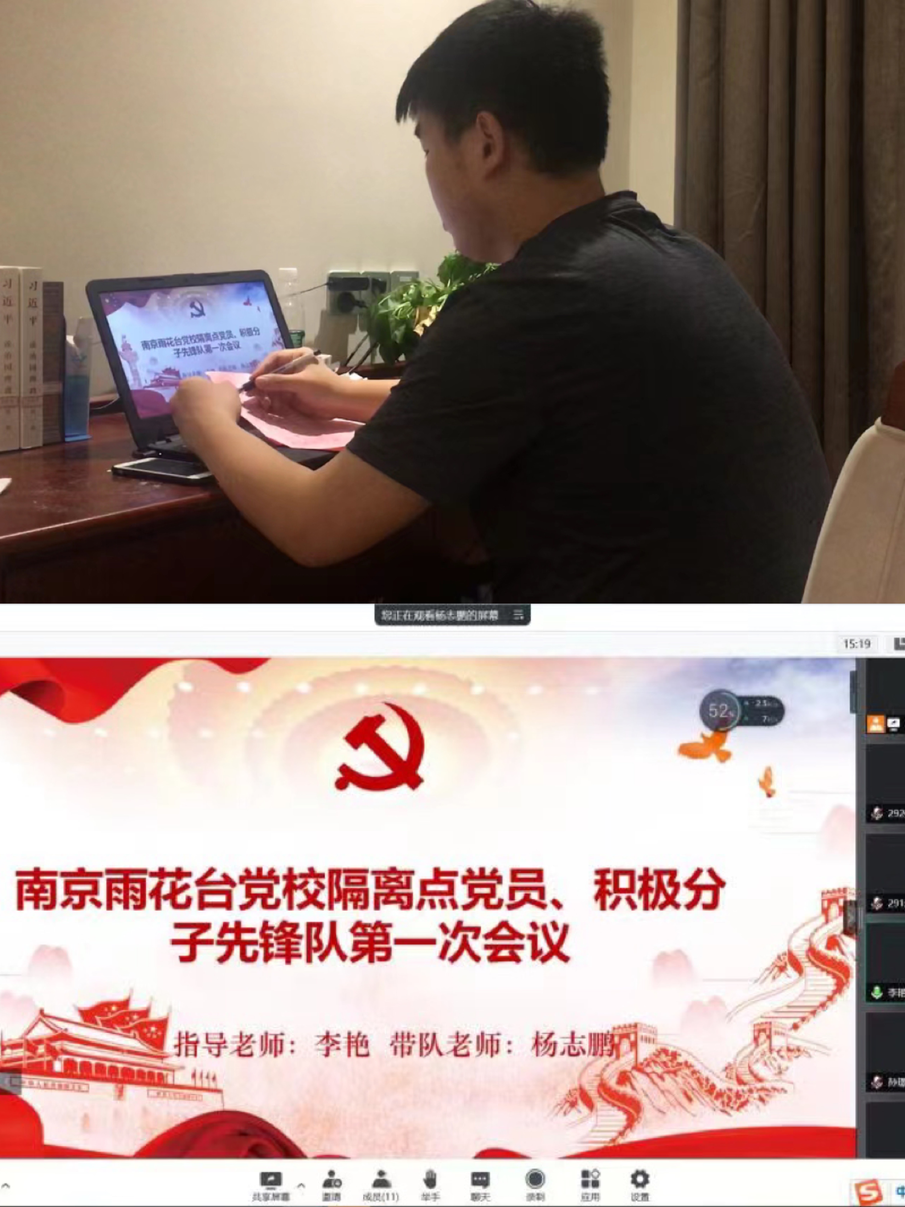 隔离期间恰逢陈曦同学的生日,杨志鹏带领同学们悄悄为他准备惊喜,在线上会议为他送上生日祝福。对于隔离点工作人员无微不至的照顾,在返校前杨志鹏也带领同学们通过感谢信、绘画、留言等多种形式,表达对他们的感激之情。目前隔离同学顺利返校,杨志鹏又继续忙碌在学校防疫一线。