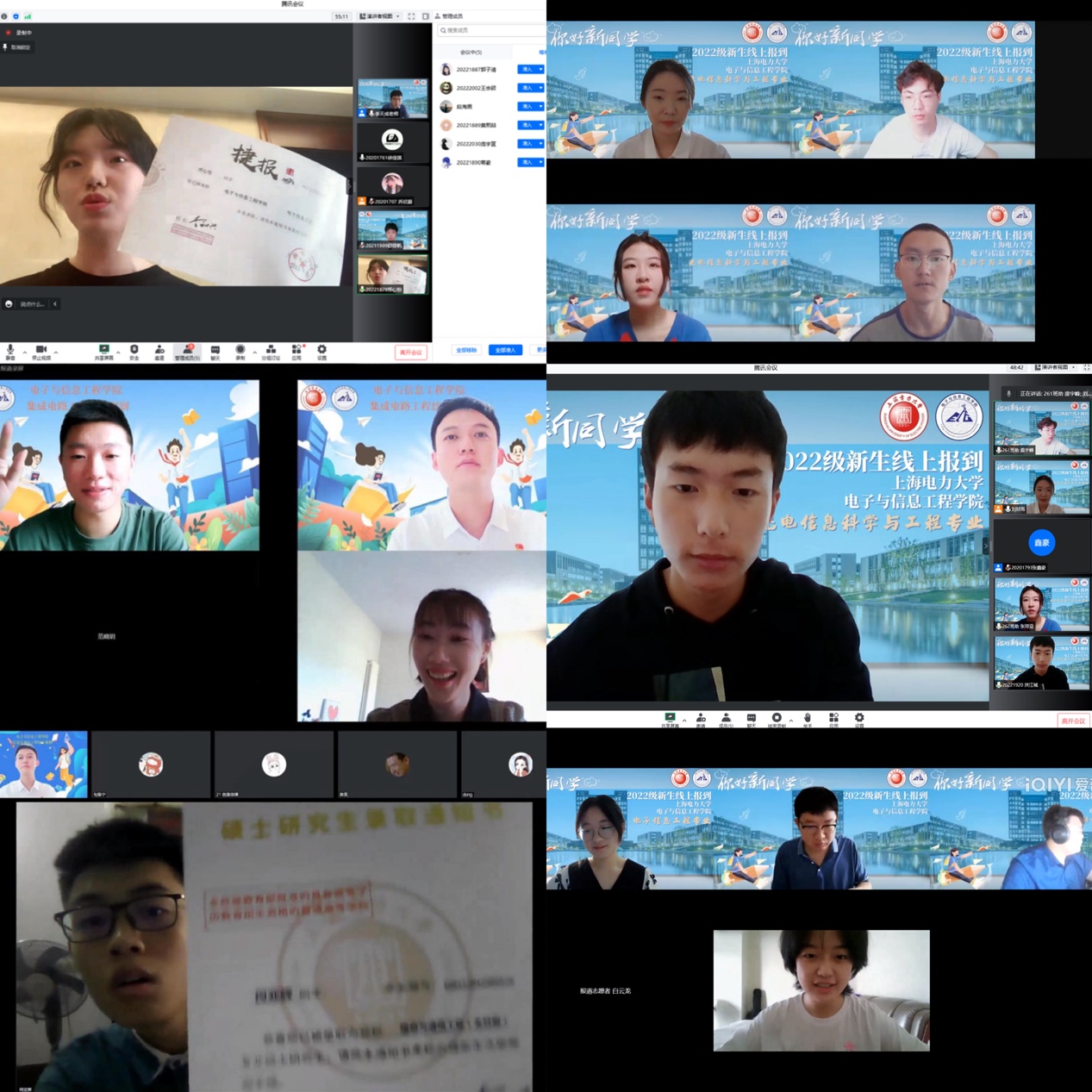 9月3日、4日,电信学院2022级研究生和本科生新生线上报到相继开启,学院官网滚动播出“欢迎新同学”海报,学院公众号推出十余篇系列推送,向新生们介绍新生班助、辅导员、班主任、团学部门、学院信息以及线上报到流程等,提前帮助新生了解学校、学院和大学生活,营造了热烈而又温馨的线上迎新氛围。报到当天新生辅导员精心设计了报到虚拟背景,通过腾讯会议的形式核验2022级新生的身份证、录取通知书、学历学位证书等相关材料,并进行了线上人脸识别验证。经过两天16个小时的线上报到工作,学院434名本研新生全部完成线上报到。新生们怀揣着对新征程的期待在云端和辅导员、班助初相见,充分感受到了学院老师的精心设计、细心筹备与亲切问候,2022级小萌新们精彩的大学生活正式开启。