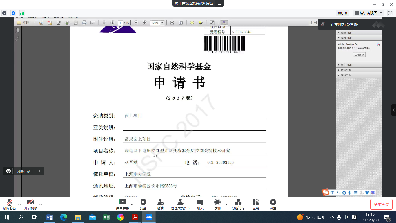 2023年1月30日下午13:00,365best官网主办的“2023年国家自然科学基金申报系列活动”第7期成功举办。本次活动邀请了我校电气工程学院的赵晋斌教授作国家自然科学基金申报讲座。讲座由崔昊杨院长主持,学院10余名教师参加了会议。