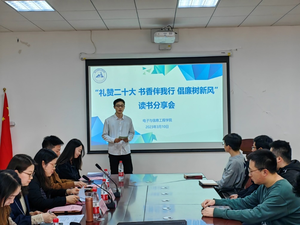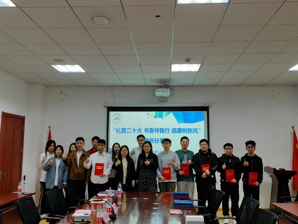 为厚植校园廉洁文化根基,增强大学生廉洁自律意识,筑牢拒腐防变思想防线,实现廉洁理念深入人心,3月10日下午电信学院在电计楼B402会议室开展“礼赞二十大 书香伴我行 倡廉树新风”读书分享会。学院党委书记何西培、党委副书记周冬梅出席本次活动,参与此次活动的还有学院辅导员和本科生、研究生学生代表。