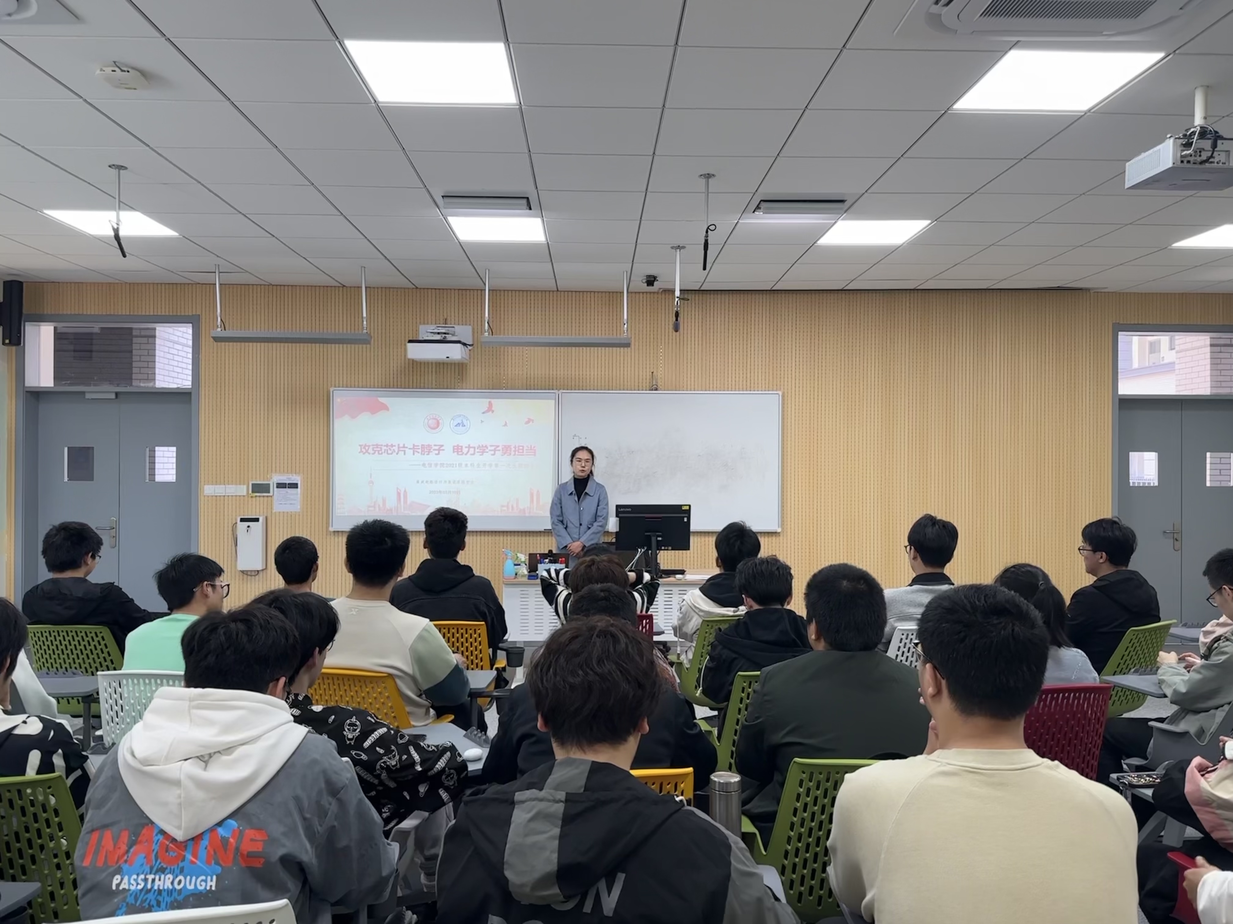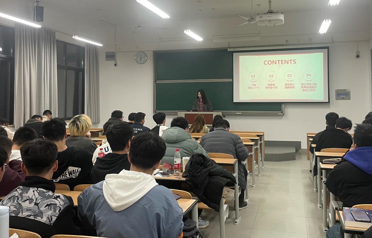 本次开学第一次主题班会是电信学院通过专业课教师和辅导员联手,推进“课程思政”牵手“日常思政”的一次大胆尝试,学院各年级、各专业同步推进,以时政热点资源切入,结合专业内容分享,融入思政元素提升,确保思想政治教育落细落实、入脑入心。
