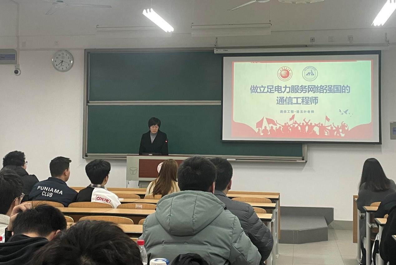 通信工程专业任课教师逄玉叶与辅导员刘甘雨共同为2022级学生开展了“做立足电力,服务网络强国的通信工程师”第一次主题班会。逄老师立足通信工程专业人才目标,为同学们介绍了通信工程专业课程设计思路与教学目标,指出当代要培养的是有理想信念、有知识见识、有担当作为、能拼搏奋斗的新时代人才,同学们要在日常学习和生活中不断培养和提升自信爱国、诚信规范、绿色低碳、创新报国的意识。主题班会激励学生将思想和行动统一到党的二十大精神上,以实际行动担当青年责任,专注信息通信,助力网络强国建设。