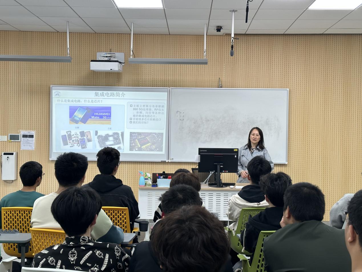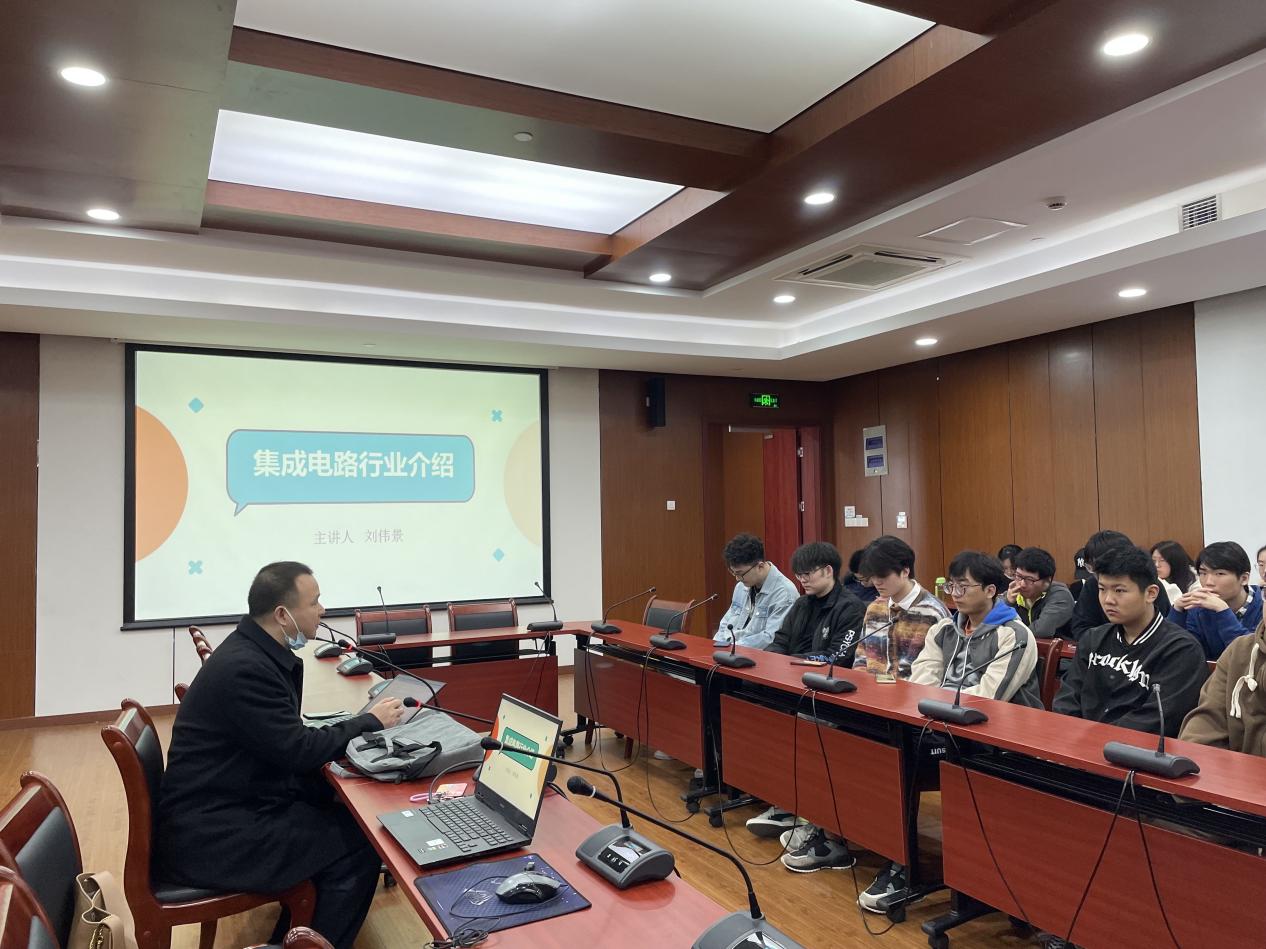 电子科学与技术专业教师刘伟景与辅导员黄燕共同策划开展了“党的二十大和我的人生路”第一次主题班会,刘老师娓娓道来我国集成电路的发展史,热爱国家、热爱集成电路行业的专家前辈在多方限制中艰苦奋斗。在党的领导,在国家的大力支持下,我国在集成电路领域有了飞速发展,过程虽坎坷,但前路光明,同学们生逢其时,大有可为。两位老师鼓励学生将自身发展融入祖国大业,胸怀报国之志,对接国家战略紧缺领域,扛起新时代青年的使命。