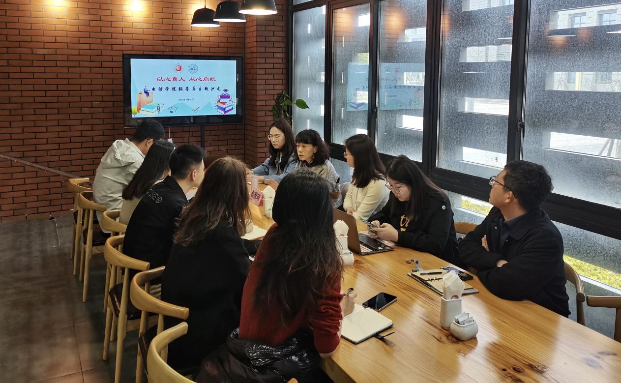 为贯彻落实“三全育人”教育理念,进一步发挥辅导员在大学生心理育人中的重要作用,切实提升辅导员心理健康教育工作水平,强化心理危机防控预警体系建设,3月20日上午电信学院举办“以心育人,从心启航”辅导员心理健康主题沙龙,特邀校心理健康教育中心蔡雅琦博士到场指导,学院党委副书记周冬梅及全体辅导员参加。