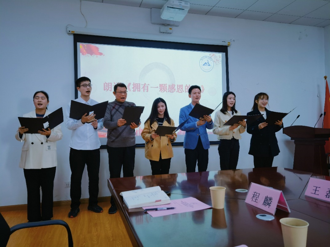 最后在舒缓的音乐声中程麟与电信学院师生集体朗诵了《拥有一颗感恩的心》。