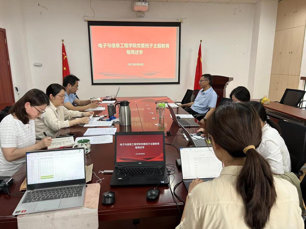 6月6日,电信学院党委中心组在电计楼B402会议室举行主题教育集中学习会、专题研讨和每周述学,集中学习有关主题教育工作文件。电信学院党委书记何西培全程主持会议。