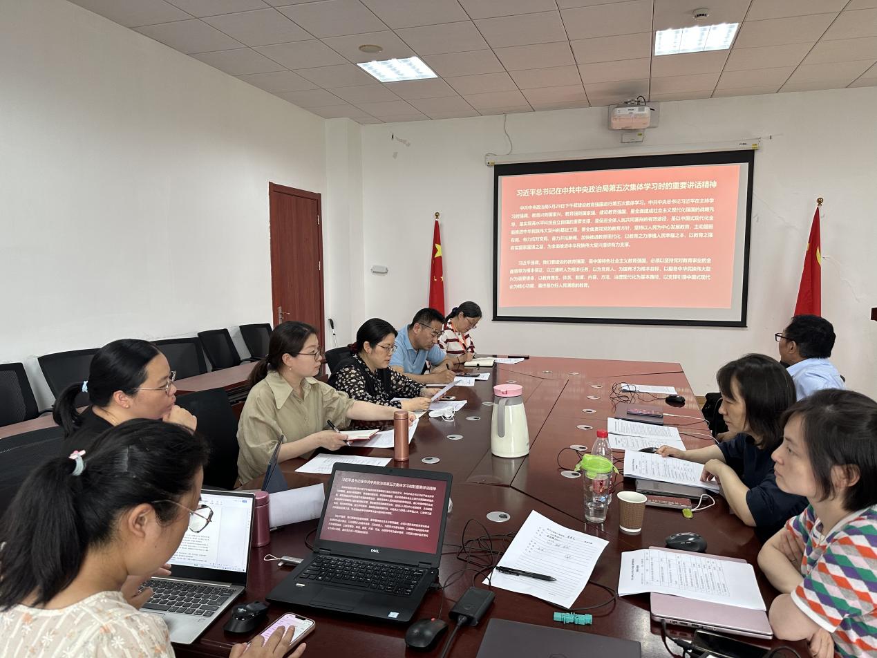 会上,中心组成员集中学习习近平总书记在文化传承发展座谈会上的讲话精神、习近平总书记在中共中央政治局第五次集体学习时的重要讲话精神、《论科技自立自强》主题教育学习文件。