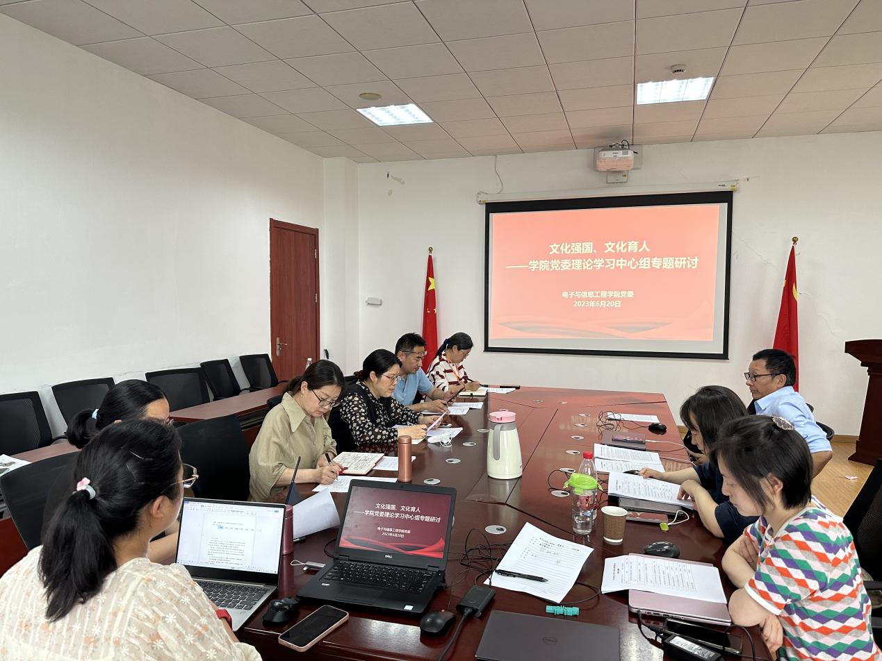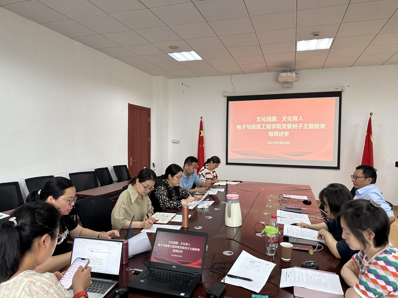 6月20日,电信学院党委中心组在电计楼B402会议室举办“文化强国、文化育人”主题教育专题研讨和每周述学。电信学院党委书记何西培全程主持会议。