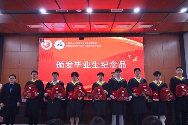 何西培为学生代表颁发毕业生纪念品。她指出,未来的人生旅途,无论是鲜花满山,抑或是路有荆棘,电信学院永远是同学们最坚强的后盾!