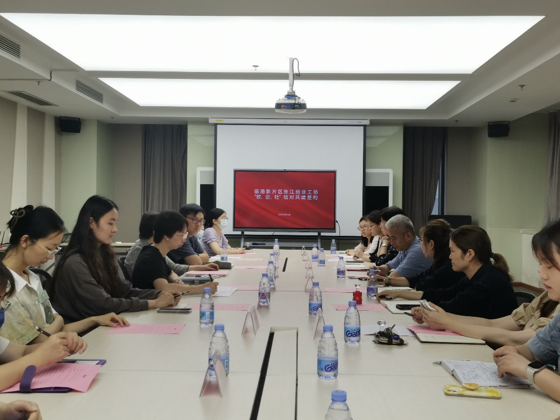 签约仪式后,共建单位一同参观了张江创业工坊党群服务站、知从科技有限公司。
