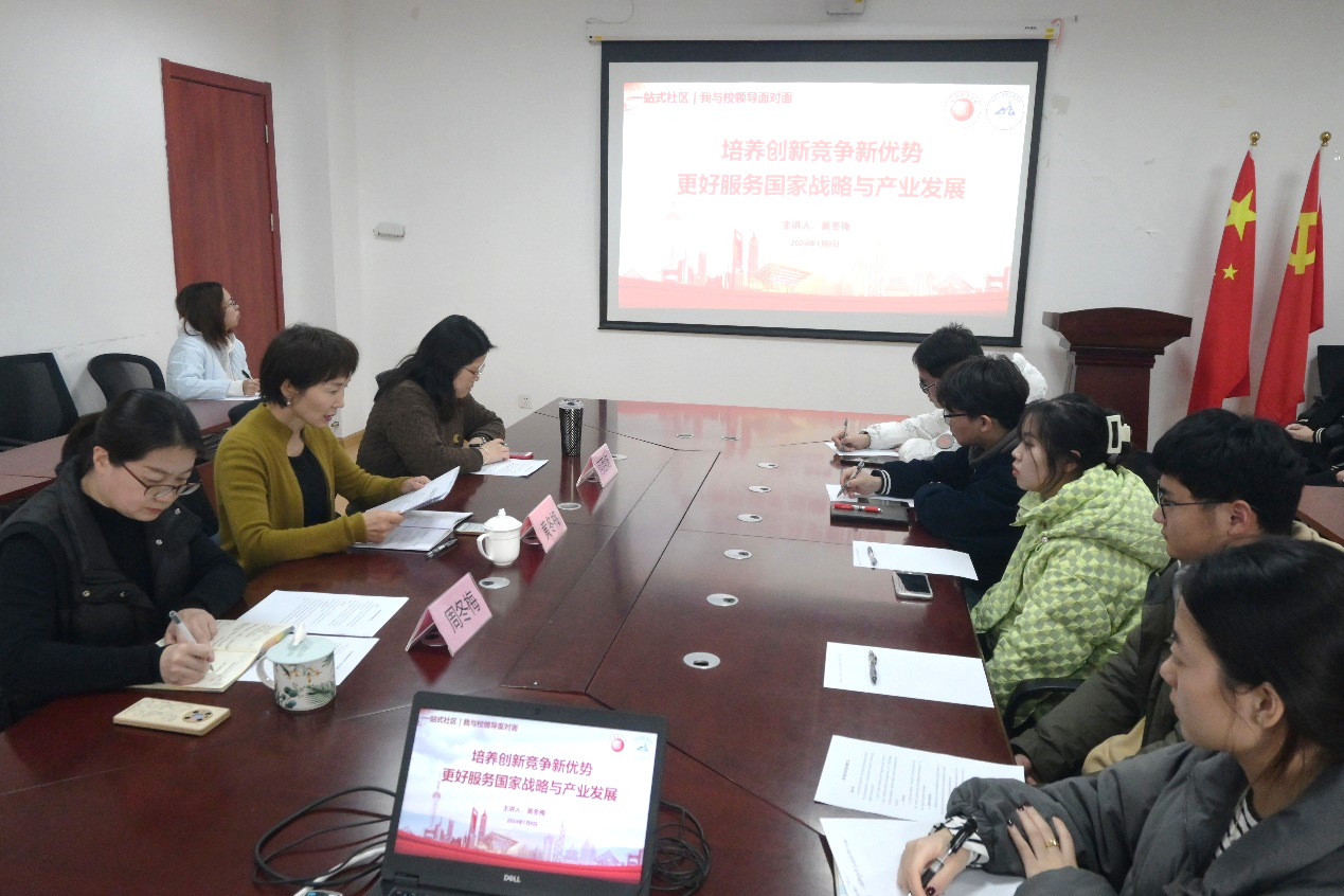 为贯彻落实立德树人根本任务,深入推进“一站式”学生社区综合管理模式建设,进一步聚焦学生发展,汇聚“三全育人”合力,2024年1月8日,副校长黄冬梅在临港校区电计楼B402会议室与电信学院师生开展了“我与校领导面对面”座谈会。电信学院党委书记何西培、党委副书记周冬梅,以及辅导员、本科生、研究生代表参加会议,会议由何西培主持。