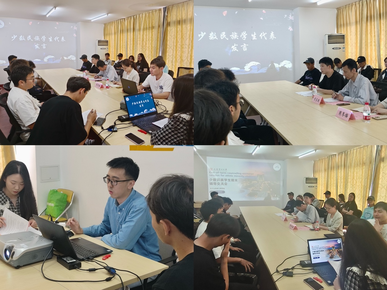 周冬梅介绍了学院在少数民族学生中主要开展的工作和活动,她强调,学院一直以来非常重视少数民族学生的教育和帮扶工作,鼓励少数民族学生认真面对每一场考试,努力提升个人综合素质,珍惜美好时光,坚定理想信念,铸牢中华民族共同体意识,把个人奋斗融入党和人民的事业之中,让青春在报效祖国、服务人民、建设家乡的伟大实践中闪闪发光。
