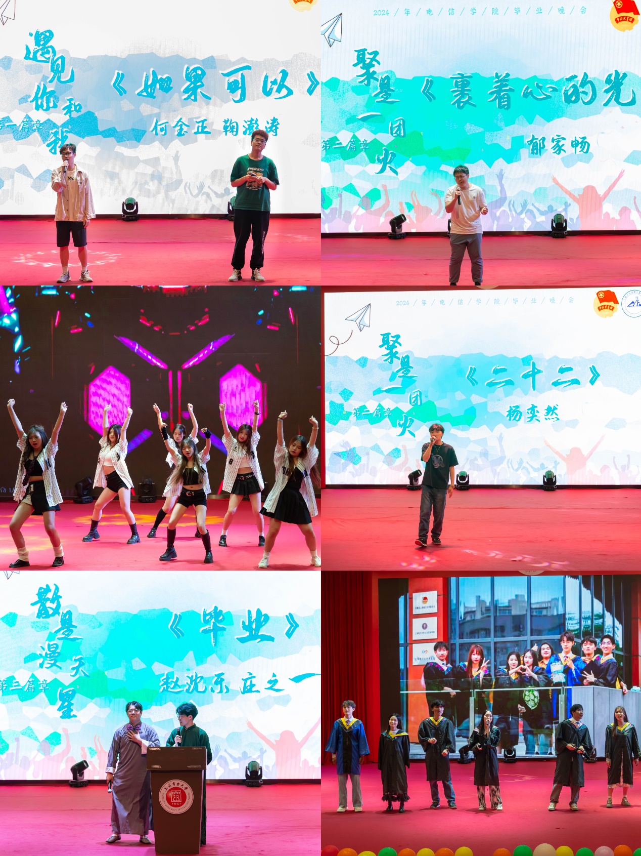 本次晚会以“仲夏梦想,‘电’亮未来”为主题,分“遇是你和我”“聚是一团火”“散是漫天星”三个篇章,节目涵盖歌曲、舞蹈、舞台剧等多种形式。同学们用自己的方式,诠释着青春的美好与激昂,展现了他们的才华与魅力。