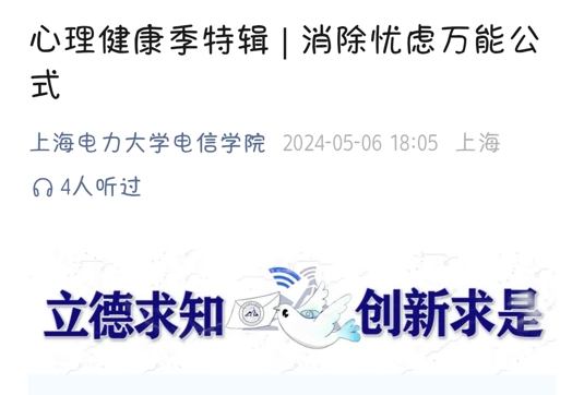 在心理健康季期间,电信学院通过微信公众号分享了题为“消除忧虑万能公式”的特辑。文章指出了忧虑对身体健康的危害,鼓励同学们尝试卡瑞尔先生的消除忧虑万能公式,并记录自己的思考过程,以此消除忧虑,保持内心平静。通过此次推送,帮助学生们掌握有效的心理调适方法,积极面对生活中的各种挑战。
