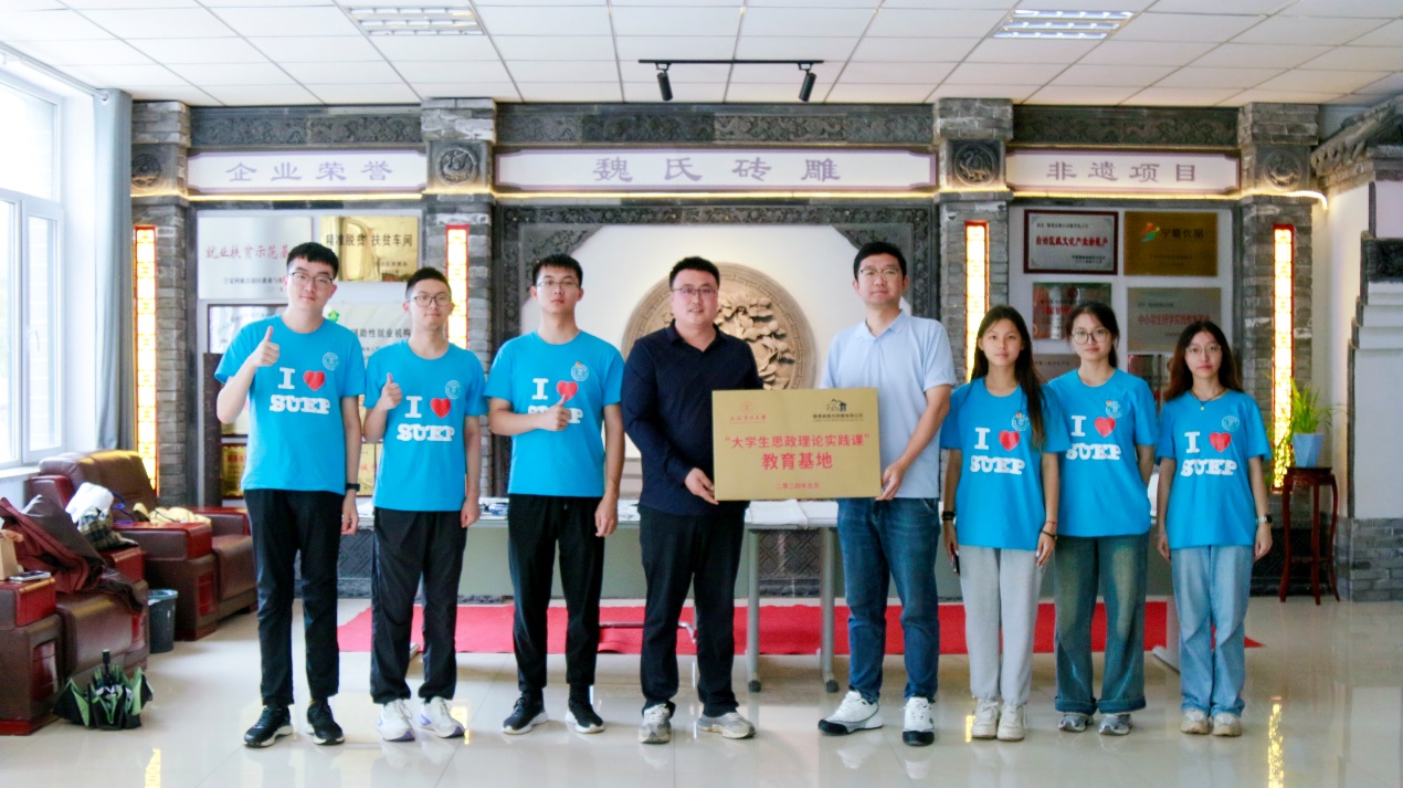 为深入学习贯彻习近平新时代中国特色社会主义思想和党的二十大精神,将思政元素融入实践课程,帮助学生在实践中培养高尚情操,7月7日,在学院党委和校团委的指导下,电信学院和宁夏当地非遗传承基地魏氏砖雕展示馆协同育人,挂牌我校“大学生思政理论实践课”教育基地。