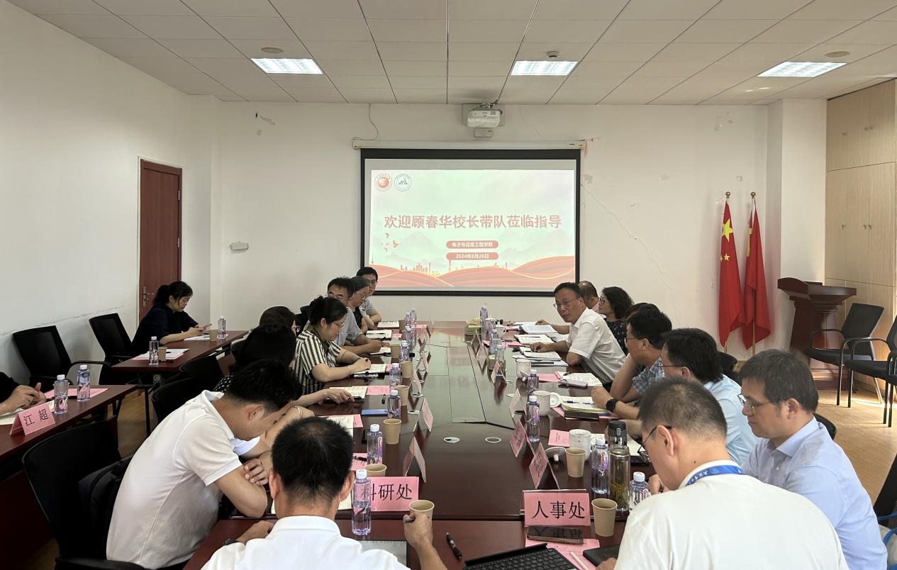 2024年8月26日,365best体育亚洲官网党委副书记、校长顾春华带队调研电信学院并主持座谈会议。党委副书记、纪委书记张艳林,党委副书记仰颐,党委副书记、副校长朱克勇,副校长杨宁、张波一同调研,电信学院党委书记何西培、院长崔昊杨带领学院领导班子和专业教师参加。