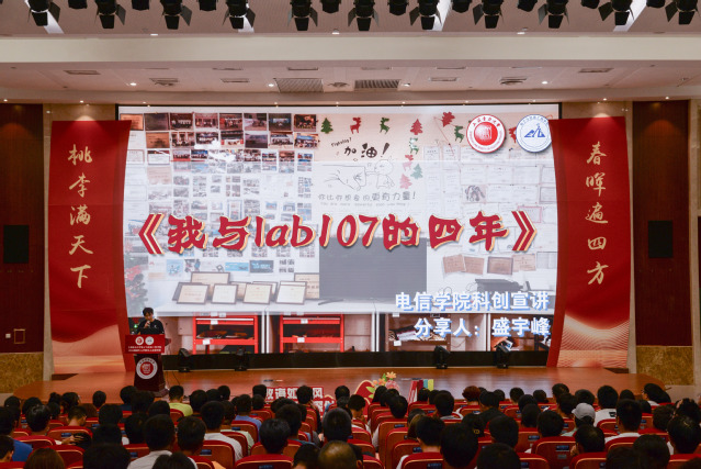 盛宇峰(2020级本科生、2024级研究生;曾任校电子学社社长、院求是创客中心主任、现任CEIE创新创业教育基地副主任)同学则以“我与Lab107的四年”为题,深情地讲述了他与科创的不解之缘。他分享了自己从遇见科创、敬畏挑战、不断成长到传承精神的心路历程,每一个阶段都充满了对科创的热爱和执着。盛宇峰学长的经历,如同一部励志的纪录片,激励新生们在科创的征途上不断探索,勇往直前。