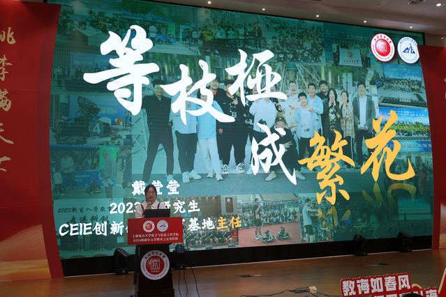 戴莹莹(2019级本科生、2023级研究生;曾任校电子学社社长、现任CEIE创新创业教育基地主任)同学以“等枝桠成繁花”为题,讲述了她在互联网+、挑战杯、电赛等科创竞赛中的奋斗历程。她的故事充满了挑战与成就,展现了她对梦想的坚定追求。戴莹莹同学的分享激发了新生们追逐梦想的勇气,并鼓励他们为实现梦想而持续努力,坚持“只有用汗水日夜辛勤的浇灌,梦想的枝桠才能长成终点的繁花”!
