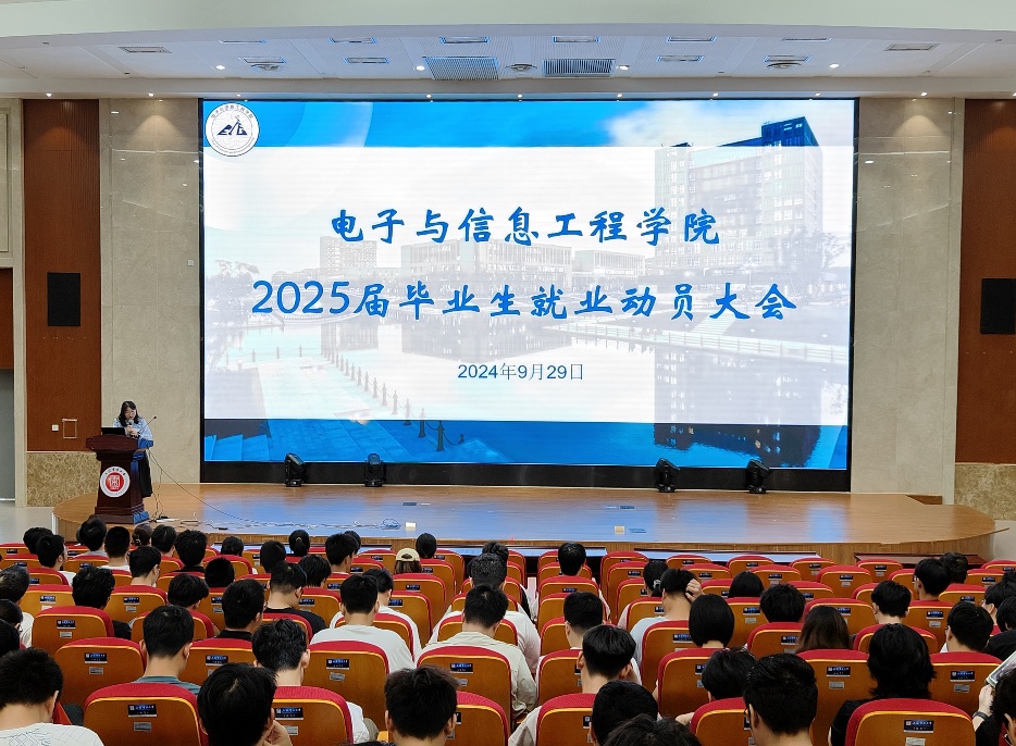 为深入学习贯彻党的二十大精神、二十届三中全会精神,以习近平总书记关于做好高校毕业生就业工作的重要指示精神为指导,帮助2025届毕业生深刻认识当前就业形势,激发毕业生的就业积极性,9月29日上午,电信学院在学术楼117报告厅举办2025届毕业生就业动员大会。学院党委副书记周冬梅、 副院长赵琰、毕业班辅导员刘姝、何思颖、学院就业专项负责人黄燕以及2025届全体毕业生参会。