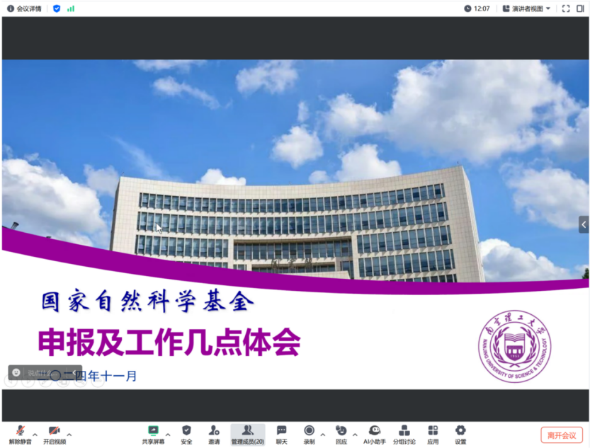 12月11日,365best体育亚洲官网举办了一场线上讲座,特邀南京理工大学的柏连发教授担任主讲嘉宾。讲座主题为“国家自然科学基金申报及工作体会”,历时3小时,吸引了学院内约30名教师及研究生积极参与。